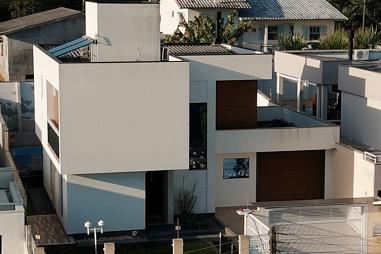 Andar inferior: sala de estar/jantar, estar intimo, escritório, cozinha, lavabo, área de serviço, dependência de empregada com banheiro, garagem com espaço para até quatro carros e churrasqueira a carvão.