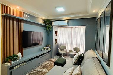 Apartamento 3 Dormitórios (sendo 1 suíte), WC social, Sala de estar e jantar conjugada, Cozinha, Area de serviço, Churrasqueira a carvão, Garagem, Espera para ar split nos quartos e na sala, Tubulação de água quente, Quartos com veneziana embutida