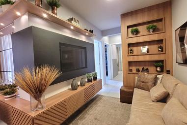 Apartamento com 2 dormitórios sendo 1 suíte, living com 2 ambientes, sacada com churrasqueira a gás, banheiro social e 01 vaga de garagem.