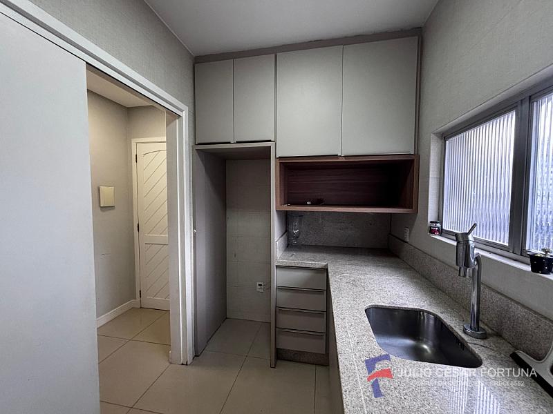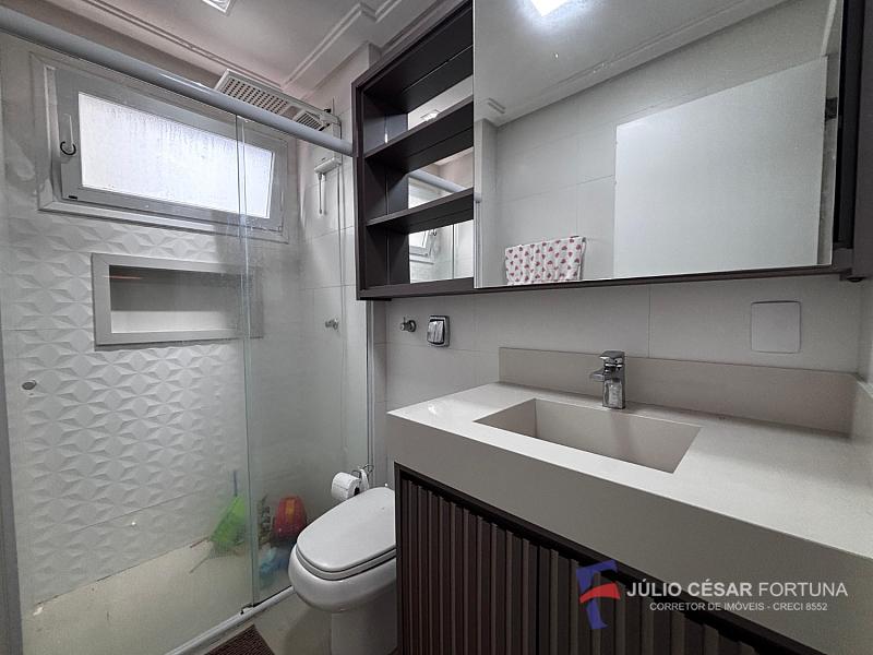 Ficam no imóvel: cozinha sob medida, móvel do banheiro, rack e painel da sala.