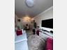 Sala de estar e jantar com rack