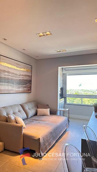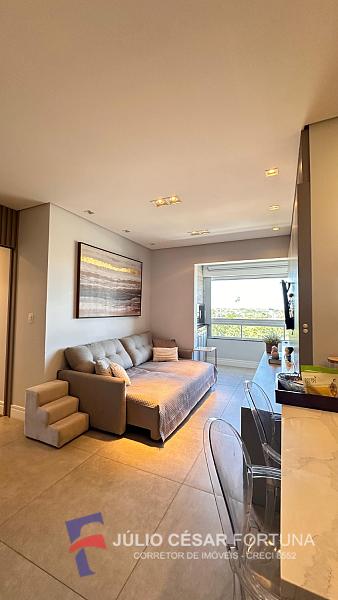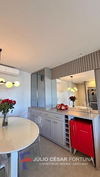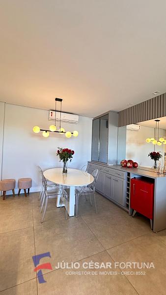 Apartamento 3 dormitórios sendo 1 suíte, mobiliado, sacada com churrasqueira à carvão, cozinha, área de serviço, living com 2 ambientes.