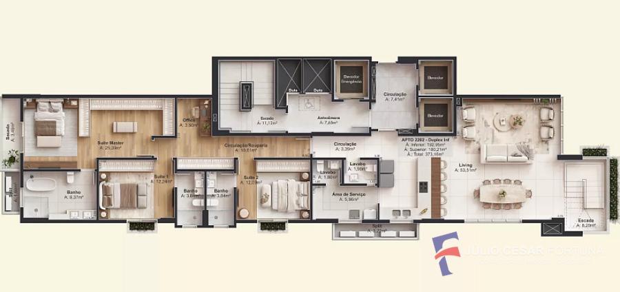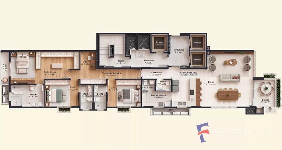 Belíssimo apartamento em Lançamento. Possui 3 suítes, 2 lavabos, amplo living com 3 ambientes, cozinha, área de serviço, sacada com churrasqueira, 3 vagas de garagem.
