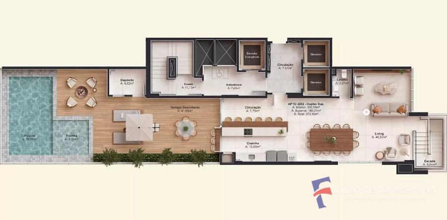 Condomínio com 3 elevadores, piscina com prainha e deck, coworking, academia, play room, espaço delivery, tomadas individuais para carregamento de carro elétrico, e muito mais..