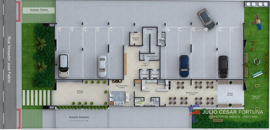 Condomínio com salão de festas, play ground e 2 elevadores.
