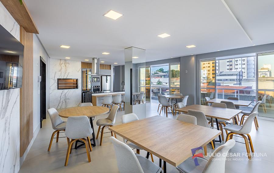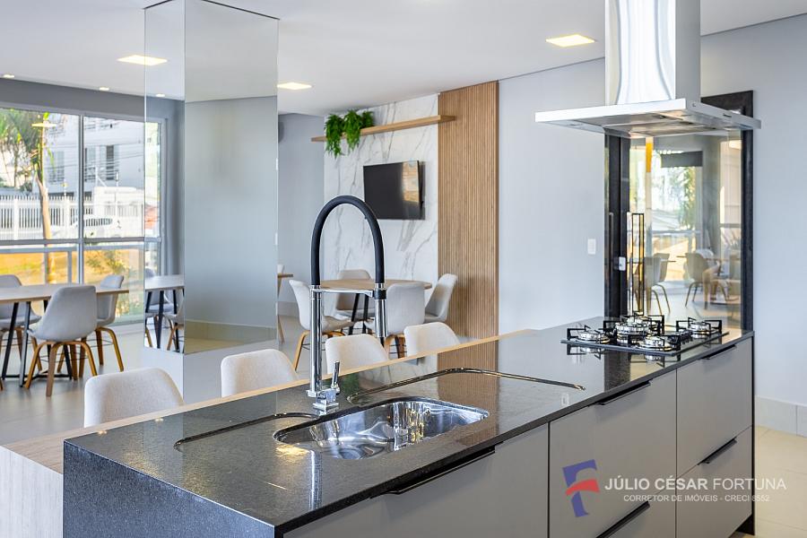 Possui 2 dormitórios sendo 1 suíte com sacada, cozinha integrada, sala estar e jantar, sacada com churrasqueiraa carvão, espera para split e tubulação para água quente.