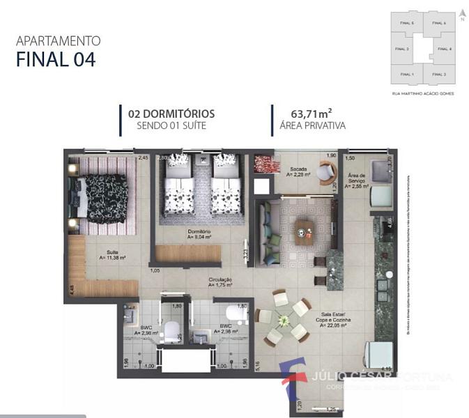 63,71 m² de área privativa