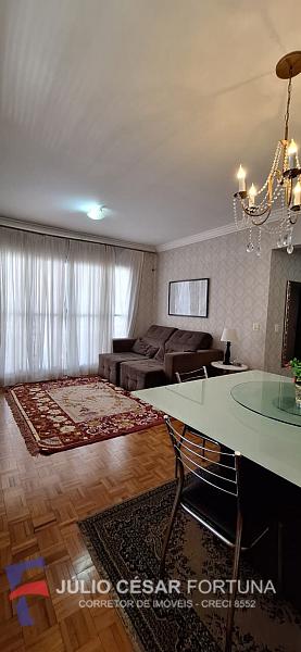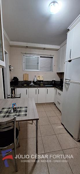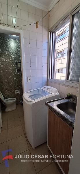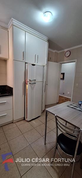 2 quartos, banheiro e mais um lavabo, sala estar e jantar amplas, sacada, cozinha, área de serviço e despensa. 1 vaga de garagem