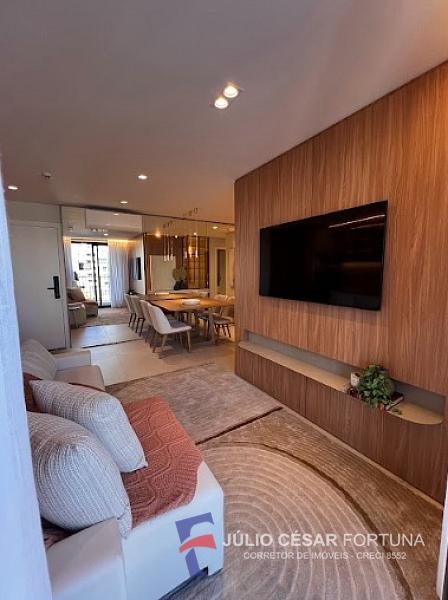 APARTAMENTO DECORADO, COM 80,36 METROS -  SENDO 2 QUARTOS SENDO OS 2 SUÍTES, LAVABO, LIVING, COZINHA, ÁREA DE SERVIÇO, SACADA COM CHURRASQUEIRA A CARVÃO.