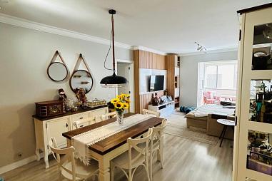 Apartamento com área privativa de 88,08m² e área total de 138,14m² - 03 dormitórios (sendo 01 suíte), sala de estar, sala de jantar, cozinha, banho social, área de serviço e sacada com churrasqueira à gás. SEMIMOBILIADO