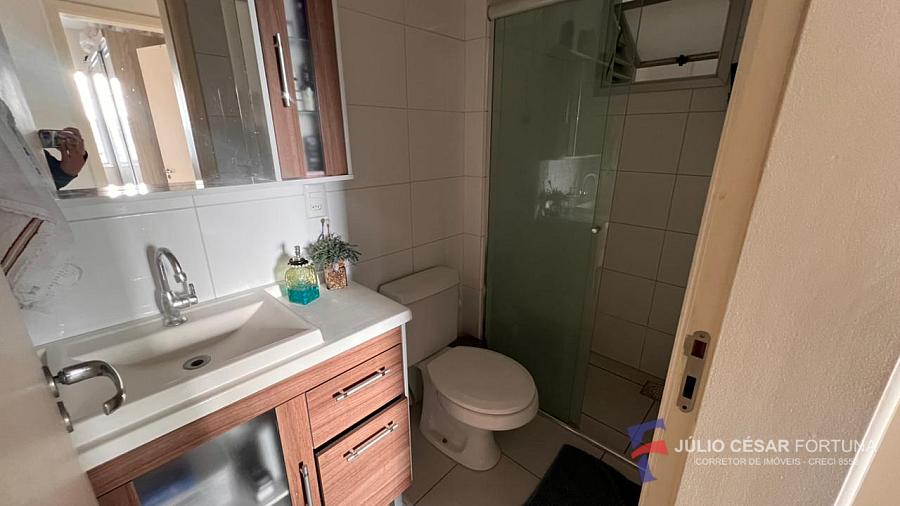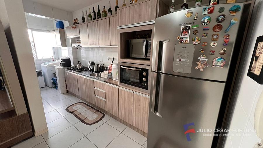 02 dormitórios, sala de estar/jantar, cozinha, banho social, área de serviço e sacada.