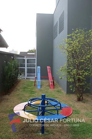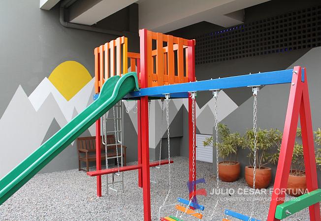 Condomínio com playground, salão de festas e elevador.