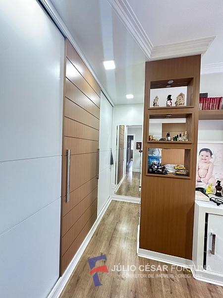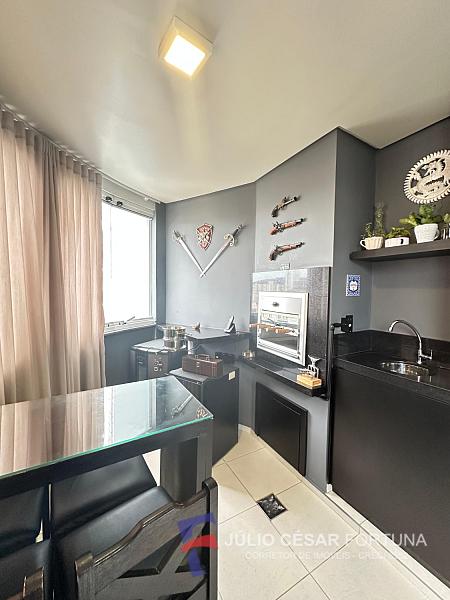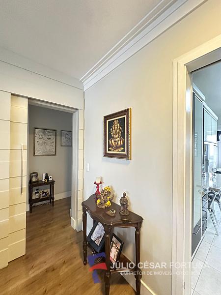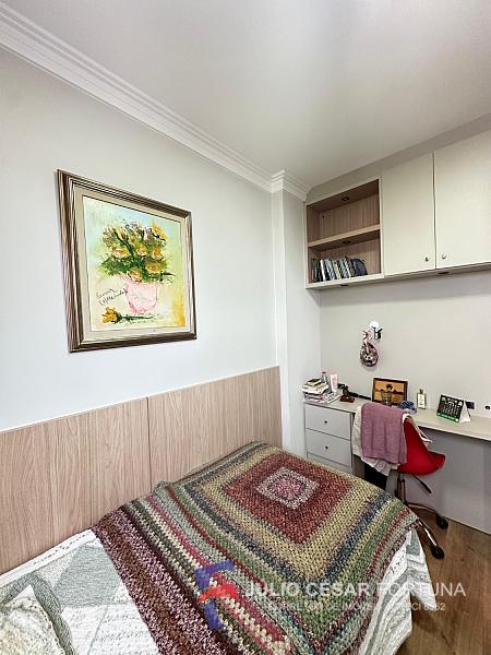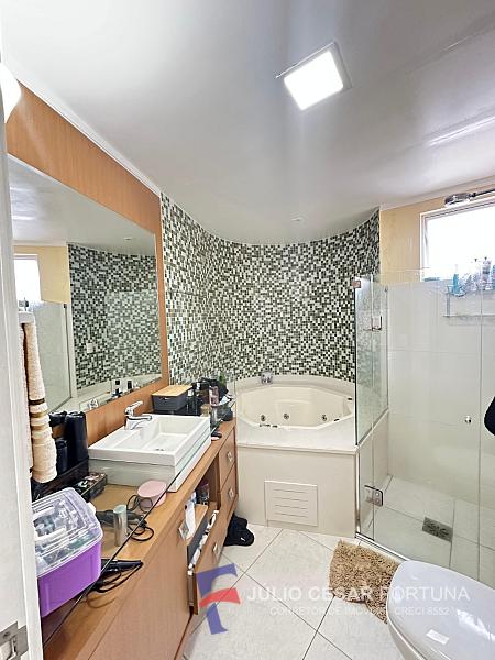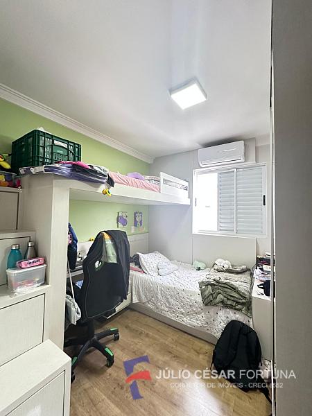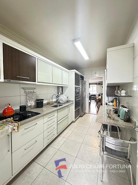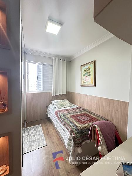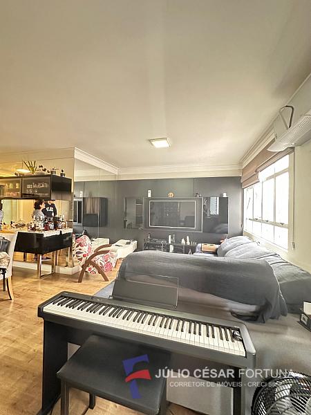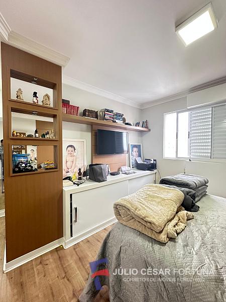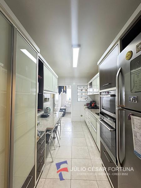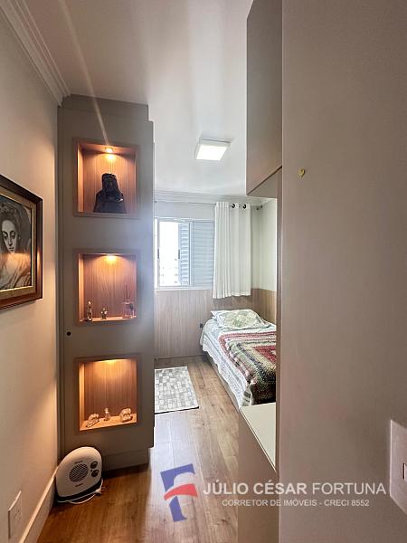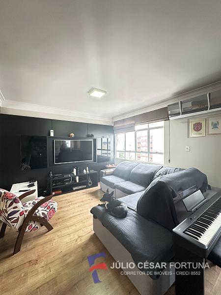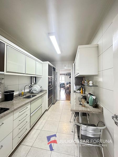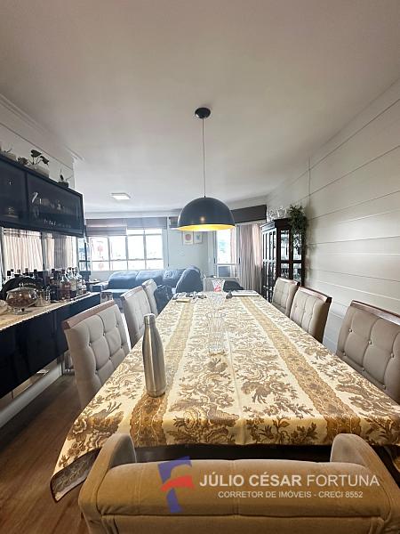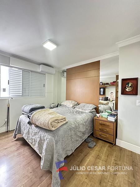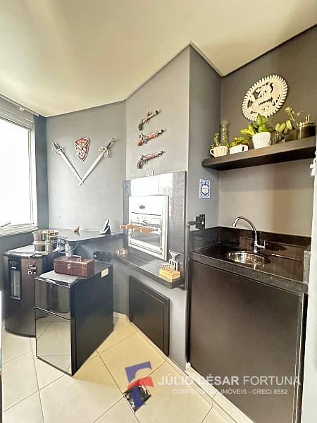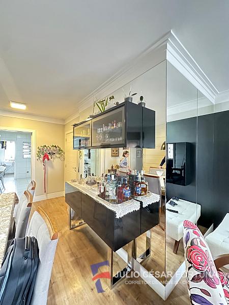 Possui 4 dormitórios sendo 1 suíte master com hidromassagem, 1 suíte simples, 2 dormitórios, banheiro social, sala com até 3 ambientes, sacada com churrasqueira à gás, cozinha, área de serviço separada e banheiro auxiliar.