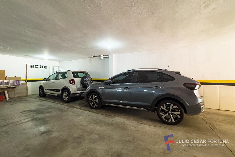 Rebaixo em gesso reto. Há uma vaga de garagem compartilhada para visitantes.