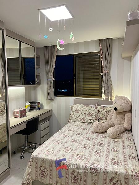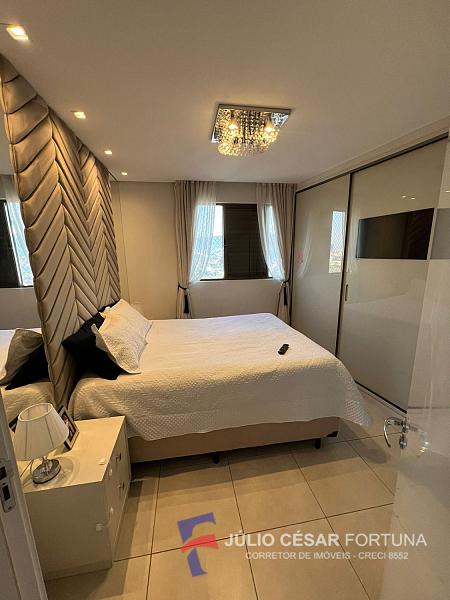 Infraestrutura do condomínio: Espelho D'água e chafariz - Entrada por reconhecimento facial - 03 elevadores - Pressurizador contra incêndio - Hall de entrada decorado e mobiliado - Academia equipada - Salão de festas mobiliado - Terraço com vista panorâmica da cidade