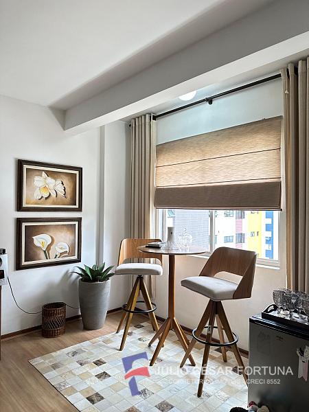 Condomínio com salão de festas na cobertura, elevador, hall de entrada mobiliado.
