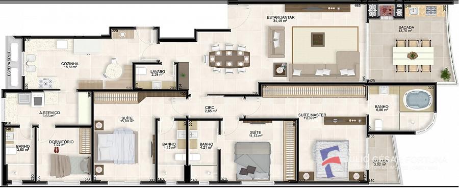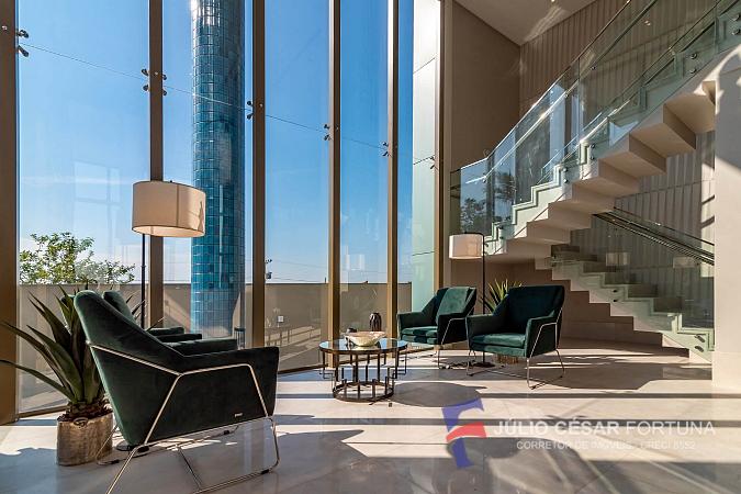 Amplo apartamento com 172m² privativos, 3 Suítes (sendo 1 master), Sala de estar e jantar, Cozinha, Lavabo, Dependência de empregada, Área de serviço, Sacada gourmet, Churrasqueira a carvão, Tubulação para água quente, Espera para instalação de Split.