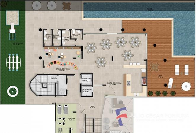 Condomínio com Academia, 2 Elevadores, Brinquedoteca, Salão de festas, Playground, Piscina com deck.