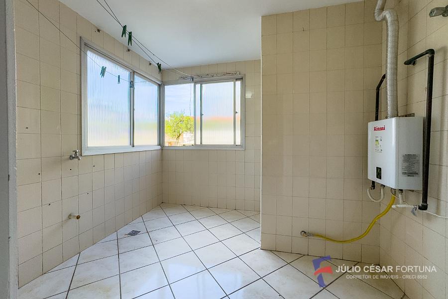 Possui cozinha espaçosa, área de serviço e dependência completa. Conta com sistema de água quente instalado.