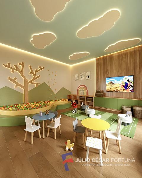 Condomínio com salão de festas, piscina aquecida, brinquedoteca, academia.
