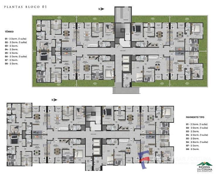 Lançamento - Apartamentos com 2 dormitórios (simples), 2 dormitórios sendo 1 suíte e 3 dormitórios sendo 1 suíte.