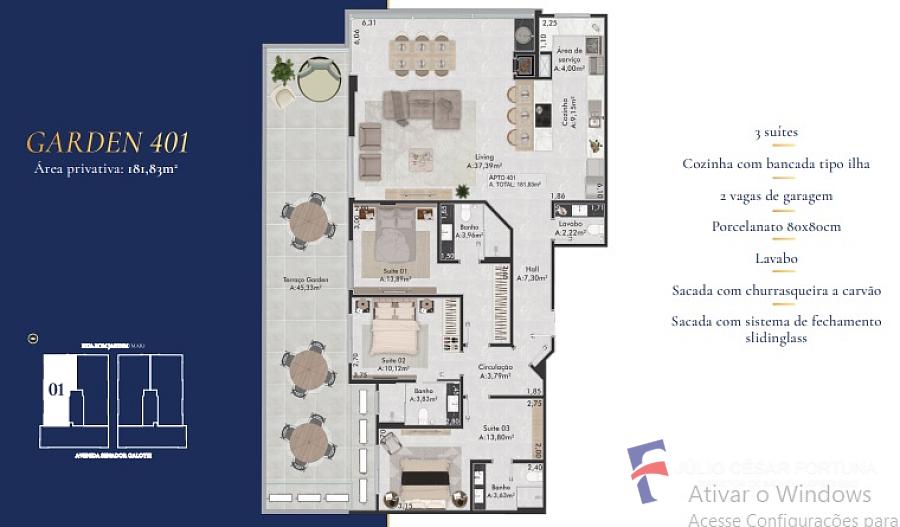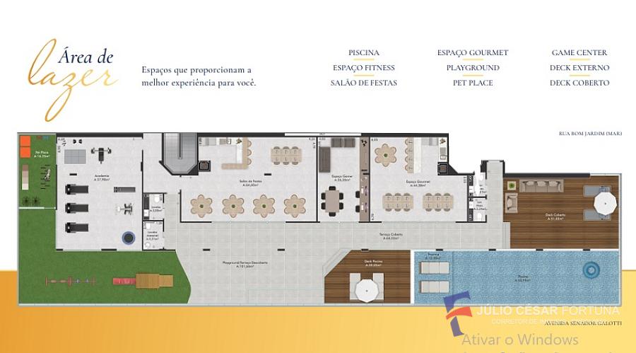 Sobre o empreendimento:  Piscina com prainha -  Academia - Playground -  Brinquedoteca -  Espaço Delivery -  Surf Space -  Salão de Festas -  Espaço Gourmet -  Game Center -  Play Pet -  Deck Externo -  Bike Share