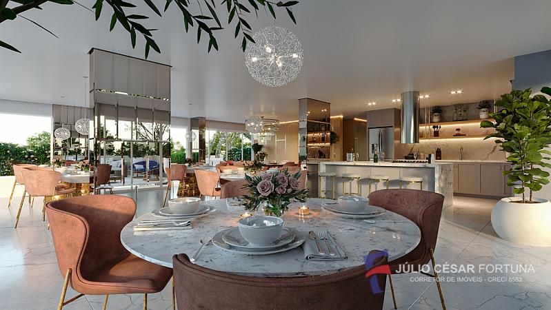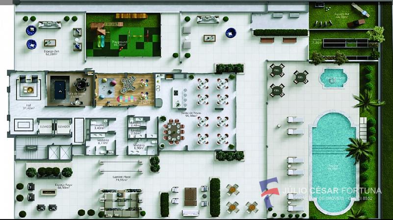 Infra estrutura do condomínio com piscina adulto e infantil, salão de festas, espaço zen, sala de jogos, espeço kids, play ground, espeço pet, horta orgânica.