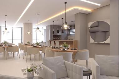 Diferenciais do apartamento: Laje nervurada, Piso porcelanato retificado, Kit Porta pronta em MDF com pintura branca em PU, Persianas em PVC automatizadas, Pintura interna com tinta acrílica fosca Premium, Rebaixo em gesso em todo o apartamento com negativo, Sacada gourmet com churrasqueira a carvão, Split instalados, Espera para instalação de Coifa, Tubulação para água quente com aquecedor.