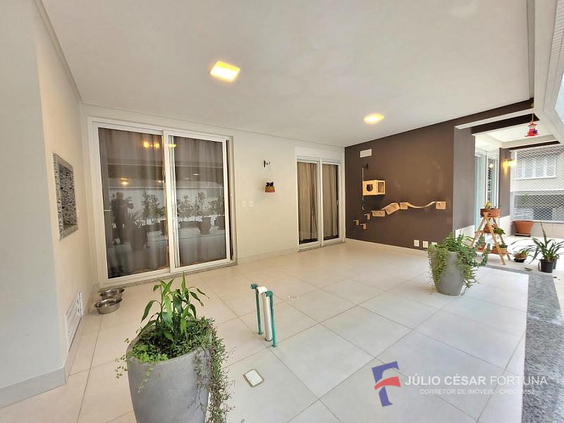 Apartamento semi mobiliado com duas vagas de garagem. Possui 3 dormitórios sendo 2 suítes, Sala de estar/Jantar, Ampla sacada gourmet com churrasqueira a carvão, Terraço enorme, copa Cozinha, Banheiro social, Área de serviço, Dependência da empregada com banheiro.
