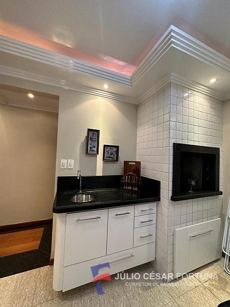 3 Dormitórios sendo um suíte, Lavabo, Sala de estar e jantar, Sacada com churrasqueira a Carvão, Banheiro social, Copa cozinha, Área de de serviço, Garagem para dois Carros, Tubulação para água quente, Despesa, Banheiro de serviço.