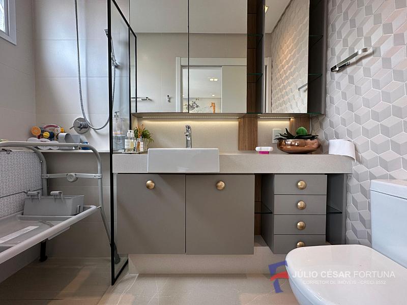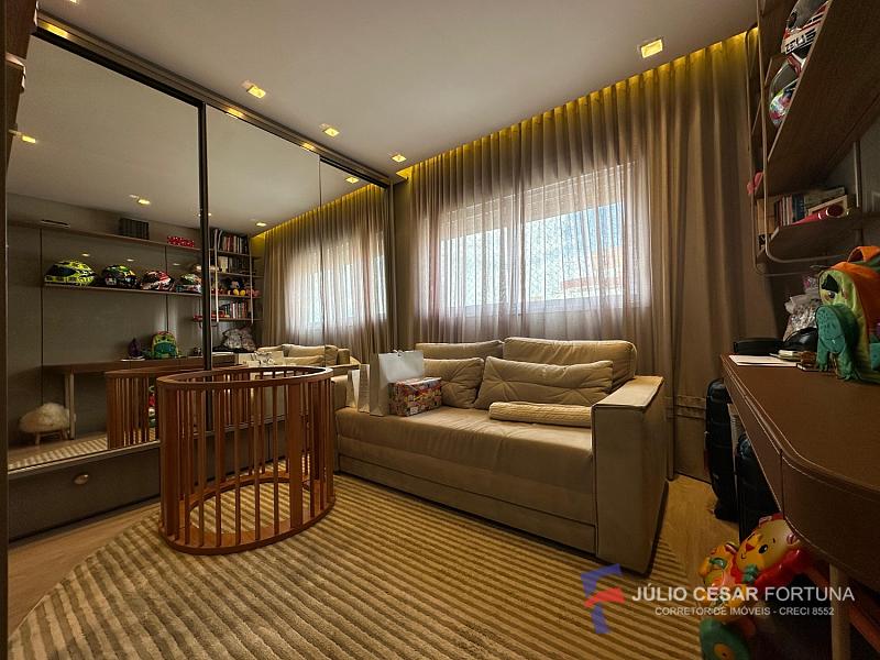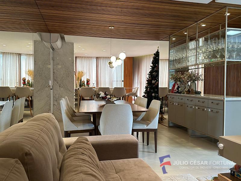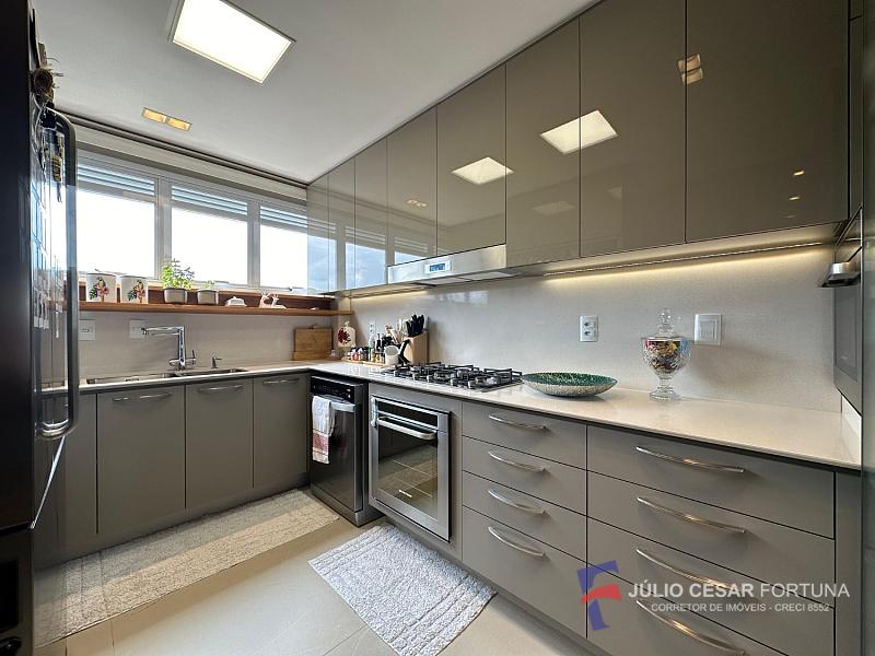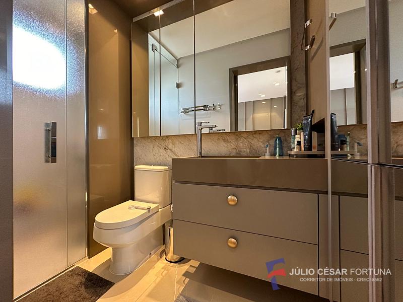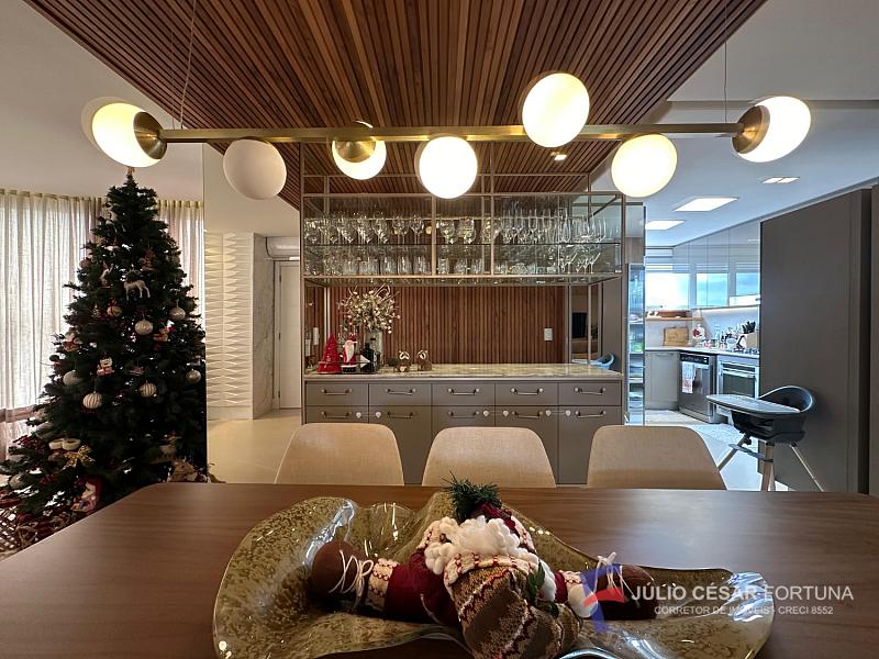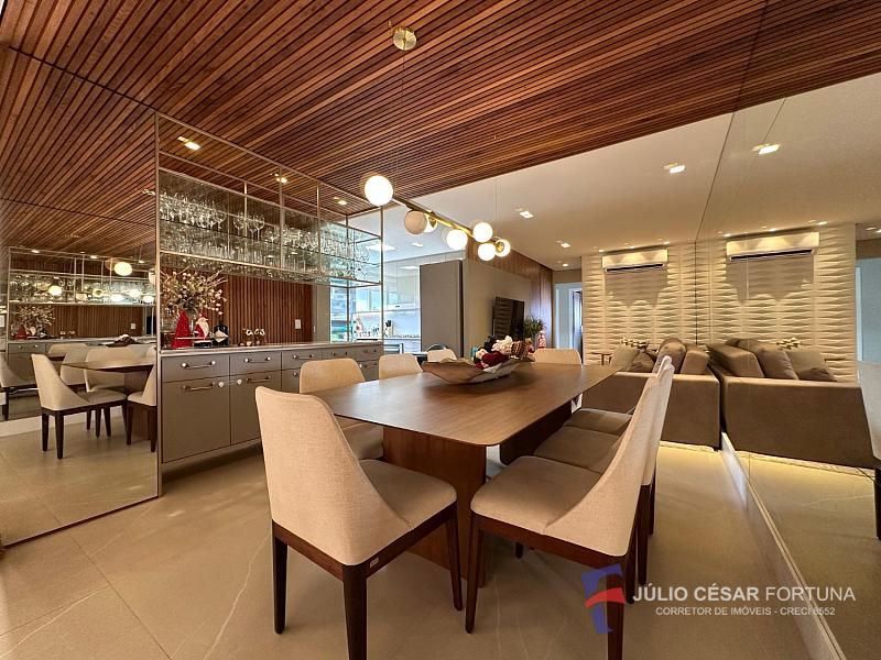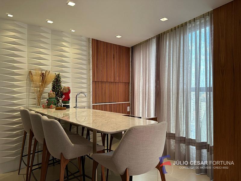 O apartamento fica no décimo segundo andar, com uma vista fantástica, ótima incidência solar e ventilação cruzada, com área privativa de 132,66m², possuí 3 suítes (sendo uma com closet), ambientes integrados proporcionando maior interação entre a família e amigos, lavabo social, churrasqueira a carvão, área de serviço, e além disso o imóvel ainda conta com duas vagas de garagem individuais e dois depósitos.