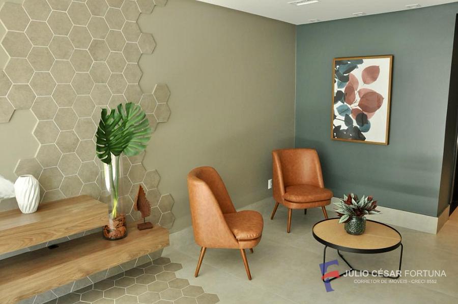 Apartamento com 2 dormitórios sendo 1 suíte, living com 2 ambientes, sacada com espera para churrasqueira, banheiro social, cozinha e área de serviço.