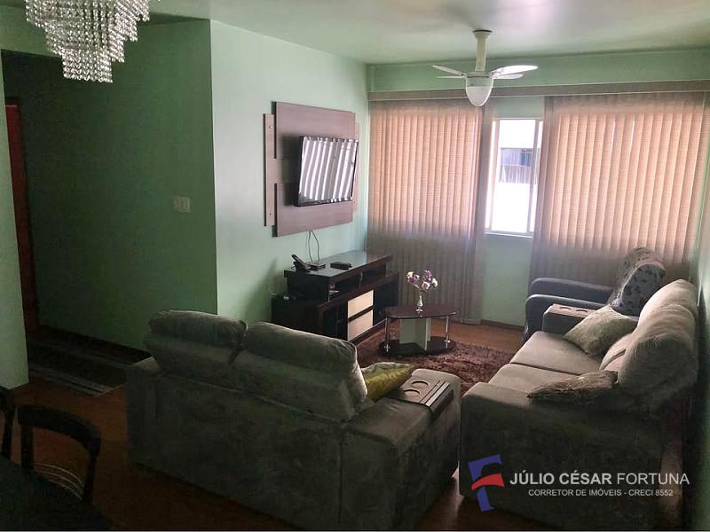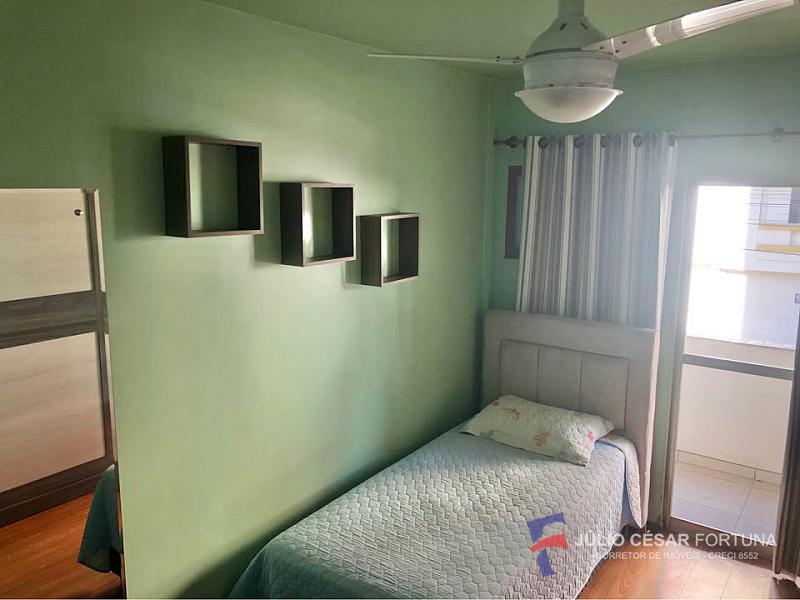03 dormitórios (sendo 01 suíte), banheiro social, sala de estar e jantar integradas, cozinha, área de serviço, sacada posicionada na frente do edifício.