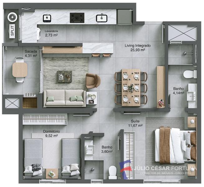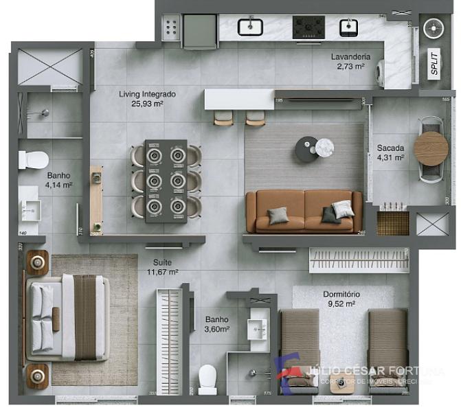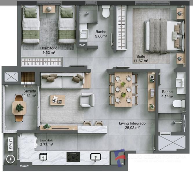 76,54 m² de área privativa