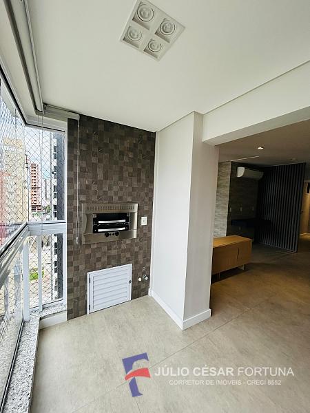 Sacada com churrasqueira a gás já nivelada com a sala e fechada cok blindex