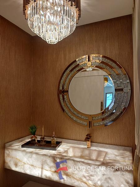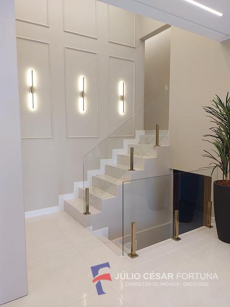 Possui 3 suites, esquadrias em pvc, fechadura digital, ar condicionado quente/ frio em todos os quartos, persianas automáticas em todos os quartos ficando bem escuro, lavabo com pedra translúcida com acendimento por sensor de presença, energia solar.