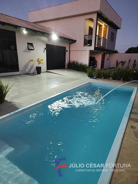Localizada em terreno de esquina com 465m², esta residência moderna oferece 280m² de área construída, unindo conforto, tecnologia e lazer em um só lugar.