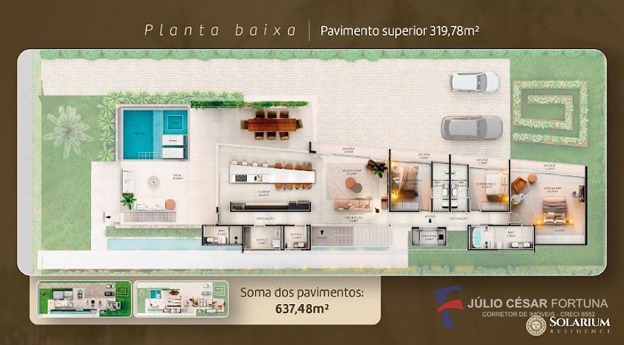 Área Total: 259,89m² (térreo) + 319,78m² (superior), totalizando 637,48m²