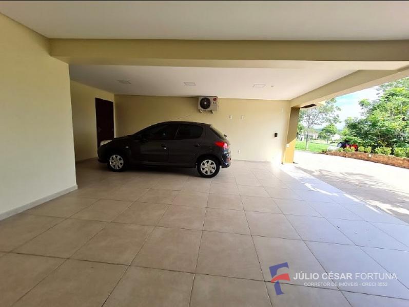 Garagem para 2 carros e mais um espaço multiuso com banheiro.