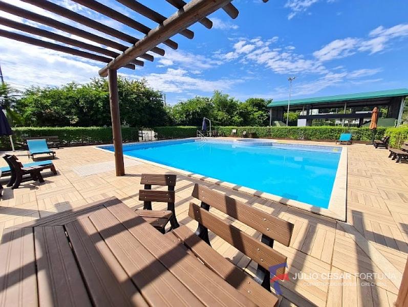 Piscinas adulto e infantil, campo de futebol, quadras de tênis e padle, academia, playground, quadra de beach tênis, 2 salões de festa, lago e muito mais...