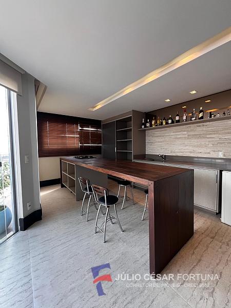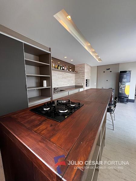 • Espaço gourmet com ilha e churrasqueira a carvão
